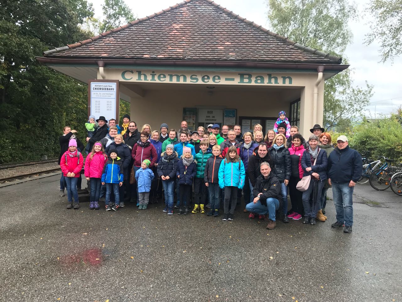 Im Anschluss fuhren wir hinunter zum „bayerischen Meer“ und zum malerischen Ort Prien am Chiemsee. Dort stiegen wir am Bahnhof (siehe Foto oben) in die Nostalgie-Dampfbahn (www.chiemsee-schifffahrt.de/de/chiemsee-bahn/chiemsee-bahn). Die Fahrzeit zur Seepromenade dauerte ca. 8 min., hier ging es auch gleich aufs Schiff (www.chiemsee-schifffahrt.de/de/home/) und wir fuhren ca. 45 min. über den See bis nach Gstadt wo wir vom Bus abgeholt wurden. Auf der Heimreise gab es eine Einkehr beim „Weißbräu“ (www.graminger-weissbraeu.de) in Altötting.